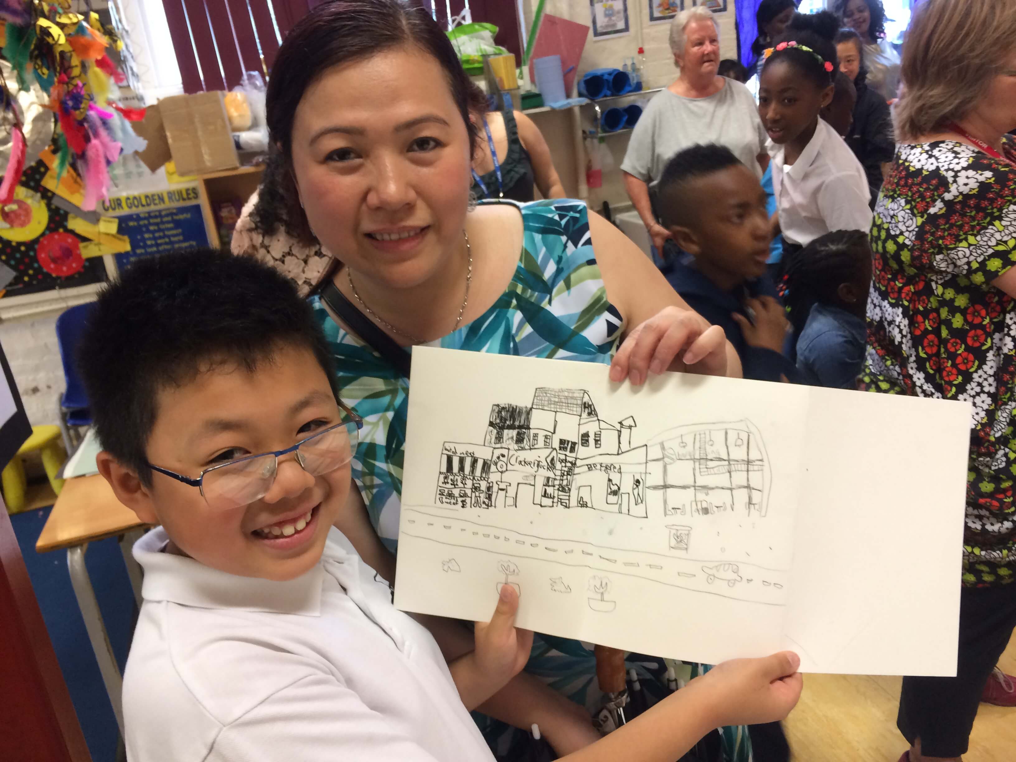 The rest of the workshops took place with the teachers in the classroom and centred on helping the children to investigate and connect with their local area. Activities included making Peckham timelines, analysing ‘then and now’ photos, investigating famous Peckham people and producing ‘time-travel’ postcards. The children made creative work in response to the architecture, history, daily life and people of the heart of Peckham and models of the special buildings. There were two models for each building; one showing it either as when first built or as seen in a later archive photo, and the other as it appears today. The work was then shown in a public Grand Finale exhibition at Mount View in Peckham, alongside the outcomes of the rest of the project.